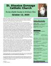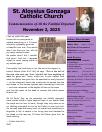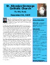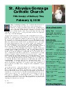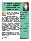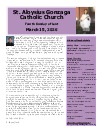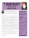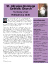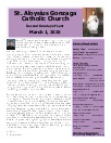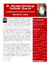 Mission Statement : St. Aloysius is a friendly parish with a sense of family. Gathered in the name of Jesus Christ to pray and worship, we serve one another with understanding and compassion. Our mission is to share, live and witness the Gospel, as we celebrate the sacraments and practice the works of Christian service, education, justice and peace. We support a vision for growth rooted in the belief that all things are possible when trusting in God.